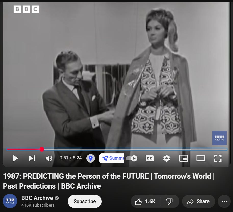 When I say futures, I don’t mean general postulations about the future. For example, the BBC’s “Tomorrow’s Girls” predictions in the 1960s (see below). No, I’m talking about leaping frogs and shooting celestial bodies. Yes, one buzzword for another two. Even better.